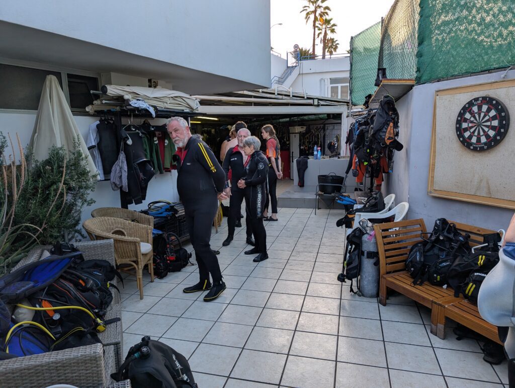 The next day dawned and we headed for the dive centre, usefully only 10 minutes walk from the hotel, in bright sunshine and no wind.
